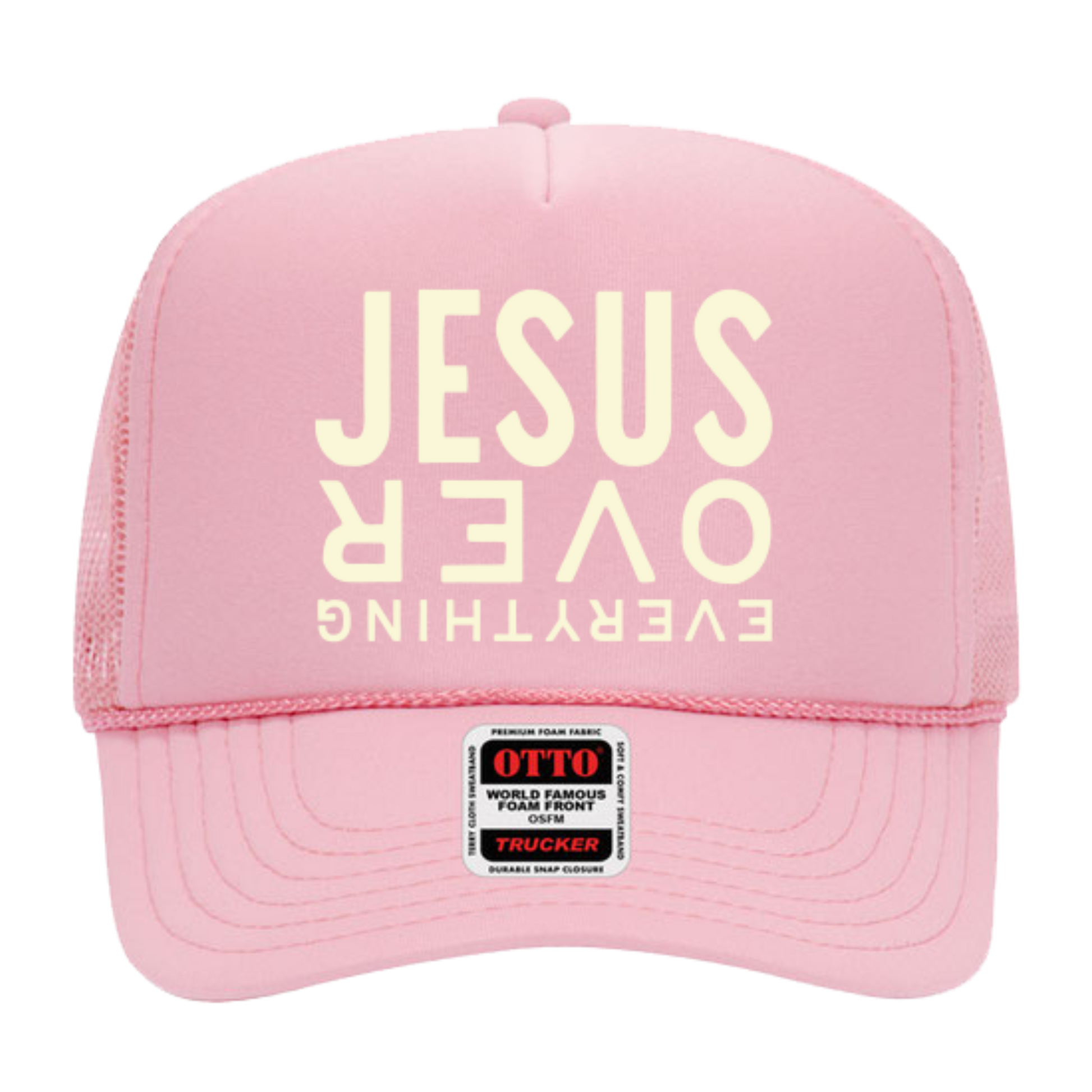 Jesus Over Everything Pink Trucker Hat